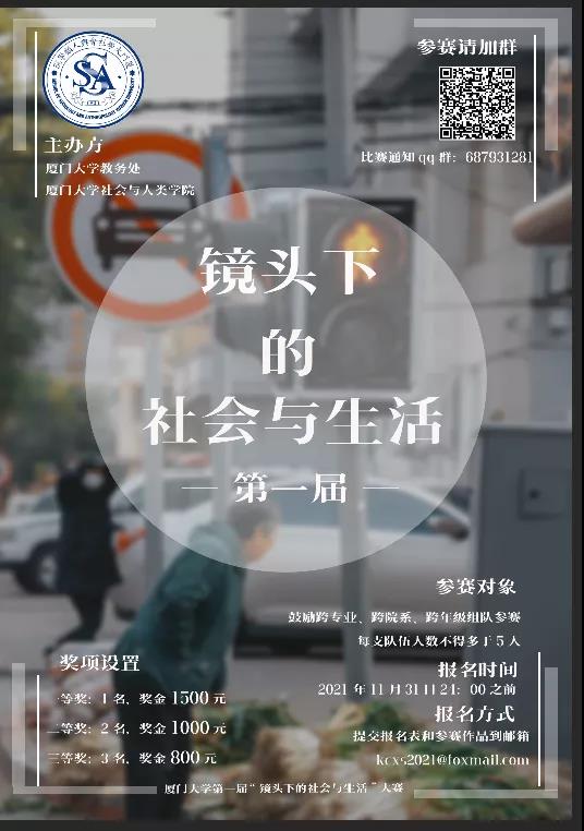 厦门大学第一届“镜头下的社会与生活”大赛,即日起接受报名!有想法有才华的你,赶快来参加吧!